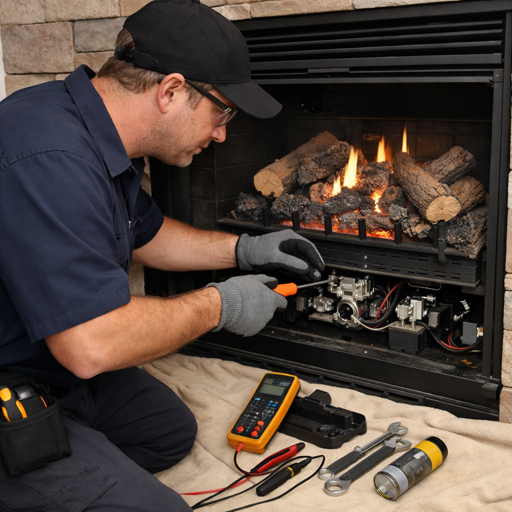 A professional gas fireplace tune-up usually includes cleaning and inspecting the burner and pilot assembly, testing the ignition system, checking gas pressure and safety controls, verifying proper venting, cleaning the glass and decorative media, inspecting wiring and controls, and completing a final flame and performance check.